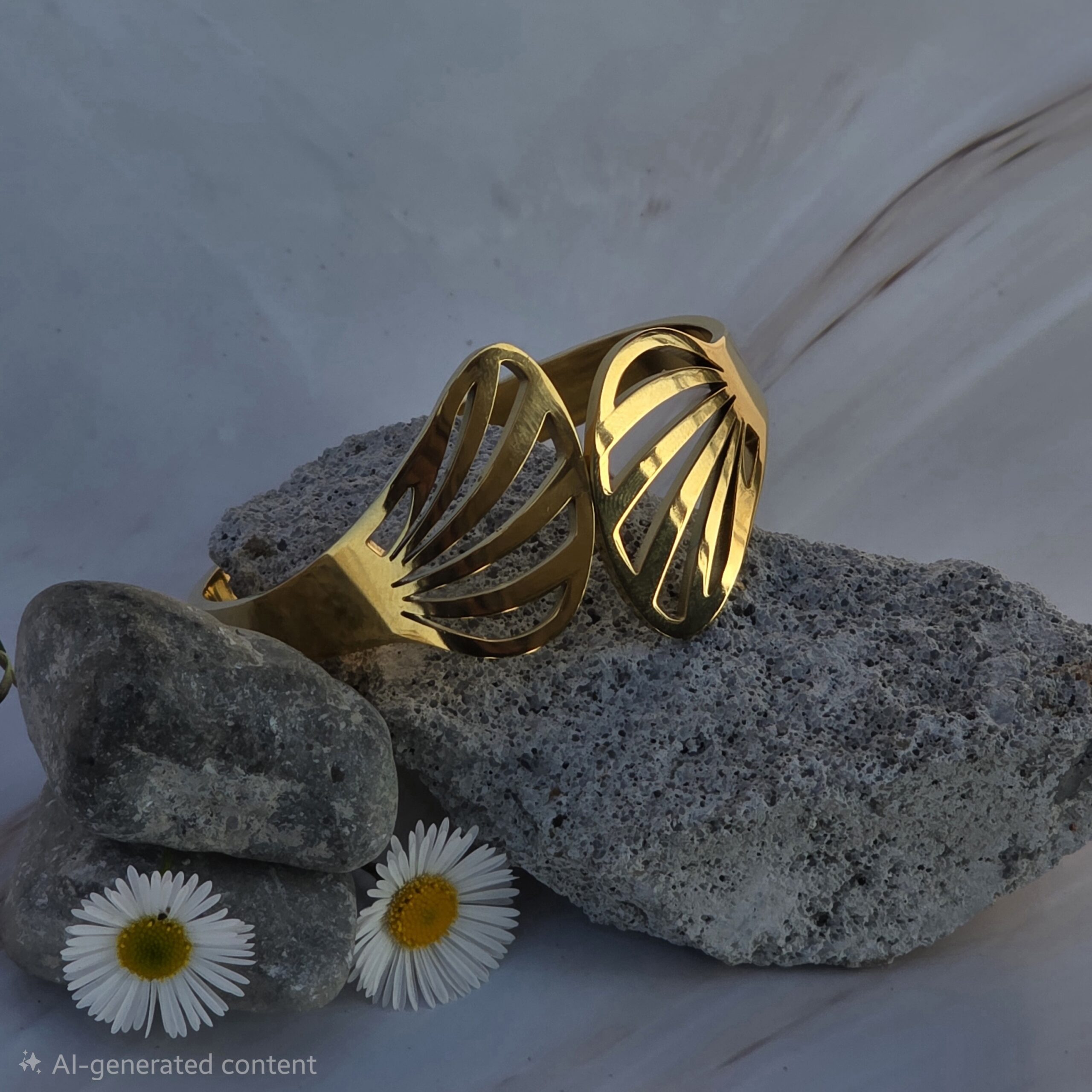 - Unique leaf-design open cuff bracelet