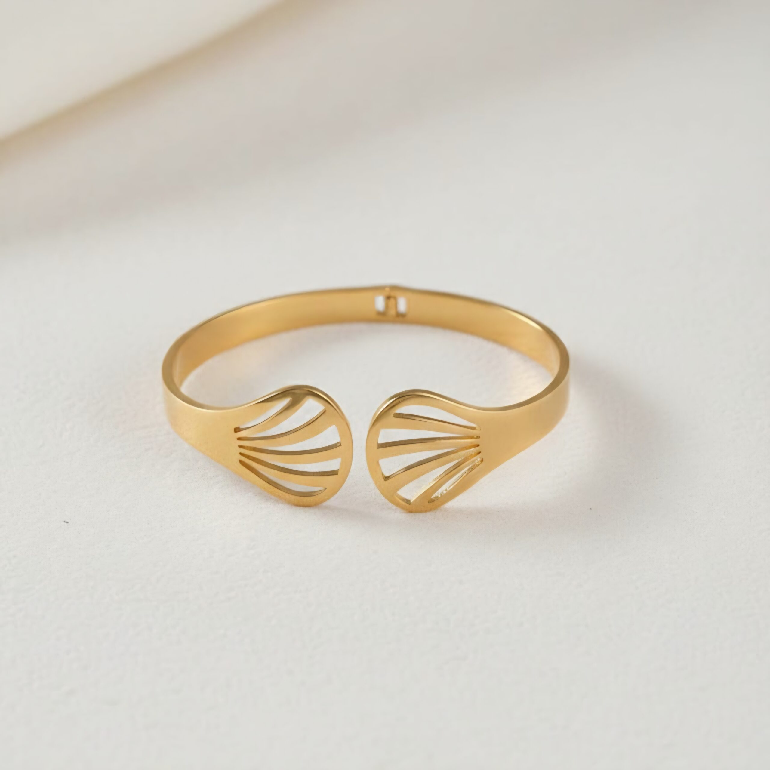 Crafted from premium stainless steel, this bracelet is finished with a high-quality anti-tarnish coating, ensuring long-lasting shine and resistance to dullness over time. Its open design allows for easy wear and a comfortable fit, making it perfect for all-day styling.