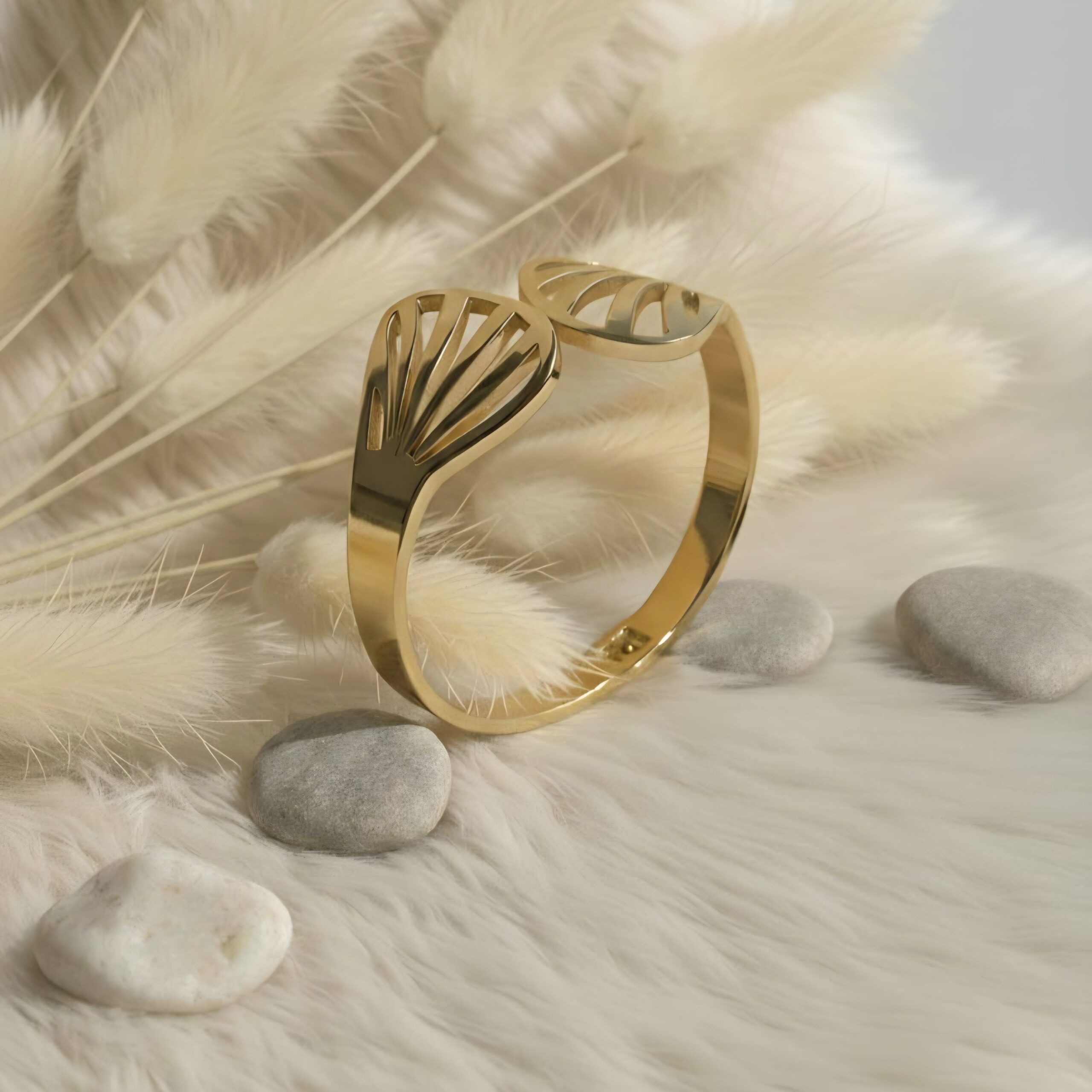 The Elowen Leaf Open Cuff Bracelet is a refined blend of nature-inspired design and modern minimalism. Featuring delicately sculpted leaf-style ends and a sleek open-cuff silhouette, this bracelet adds a soft yet confident statement to your everyday jewellery look.