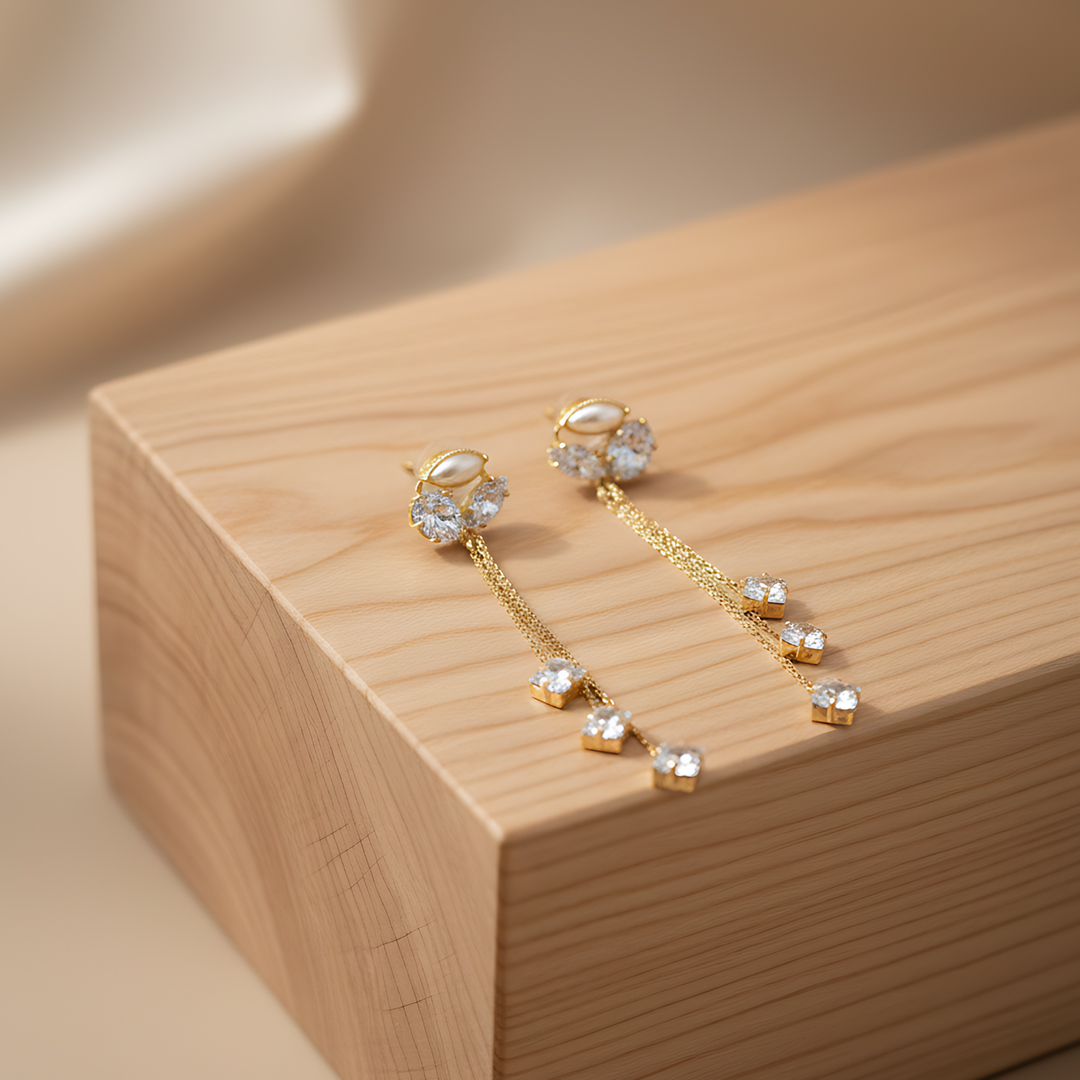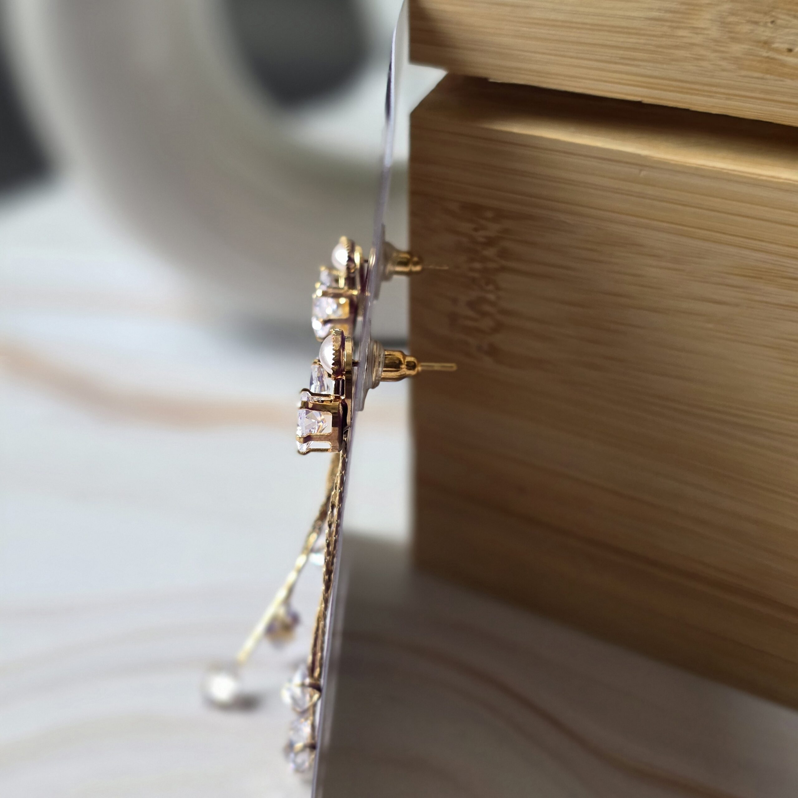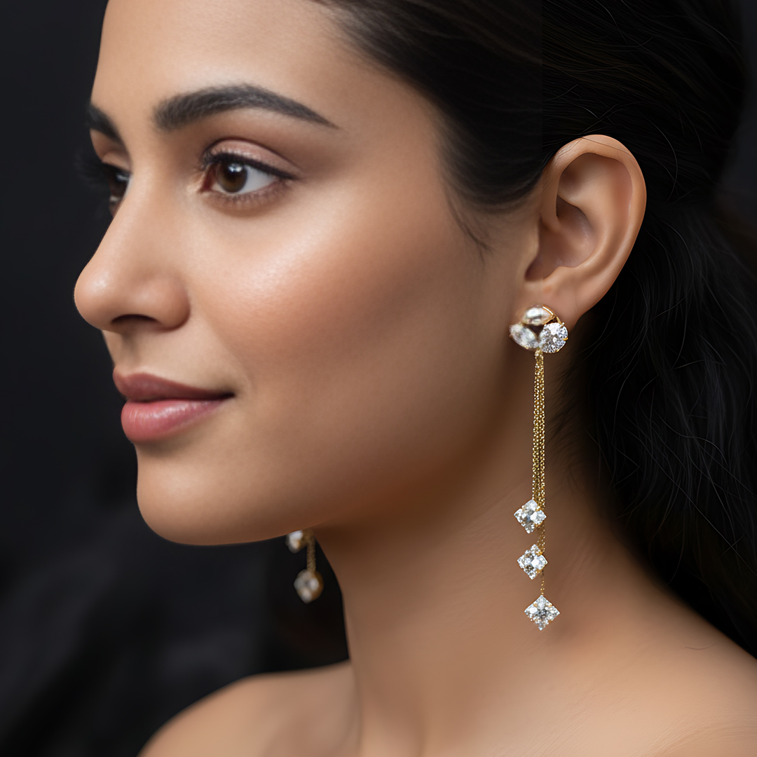 The cascading design catches the light beautifully, creating a refined yet eye-catching look. Lightweight and comfortable, they are perfect for festive occasions, evening parties, and elegant celebrations.